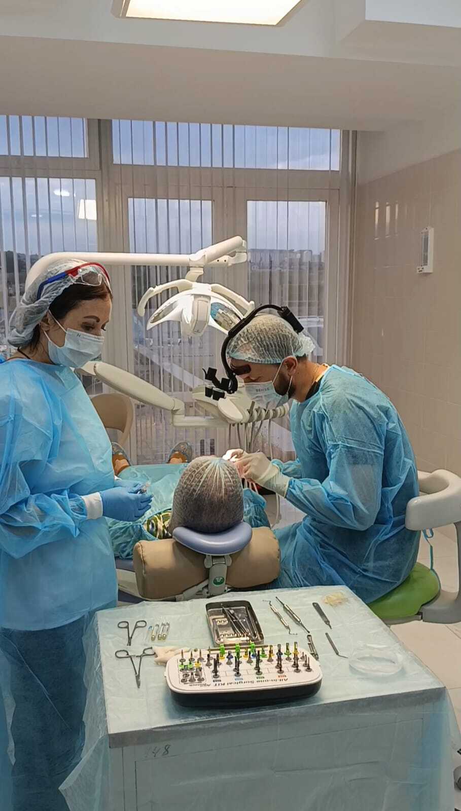 В день процедуры вас принимают в отдельной операционной, проводят имплантацию с применением 3D шаблона, т.е. без риска и страха.