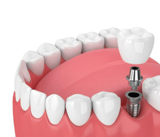 Коронковая (видимая) часть зуба крепится на абатмент (связующее звено между имплантом и коронкой), что позволяет сохранить рядом стоящие здоровые зубы и уберечь их от лишней нагрузки