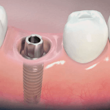 Имплантат имитирует натуральный корень зуба, что полностью восстанавливает жевательную функцию после установки коронки или мостовидного протеза