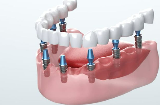 Фиксация полного протеза: Даже 2-4 имплантата (технология All-on-4) могут служить надежной опорой для полного несъемного или условно-съемного протеза.